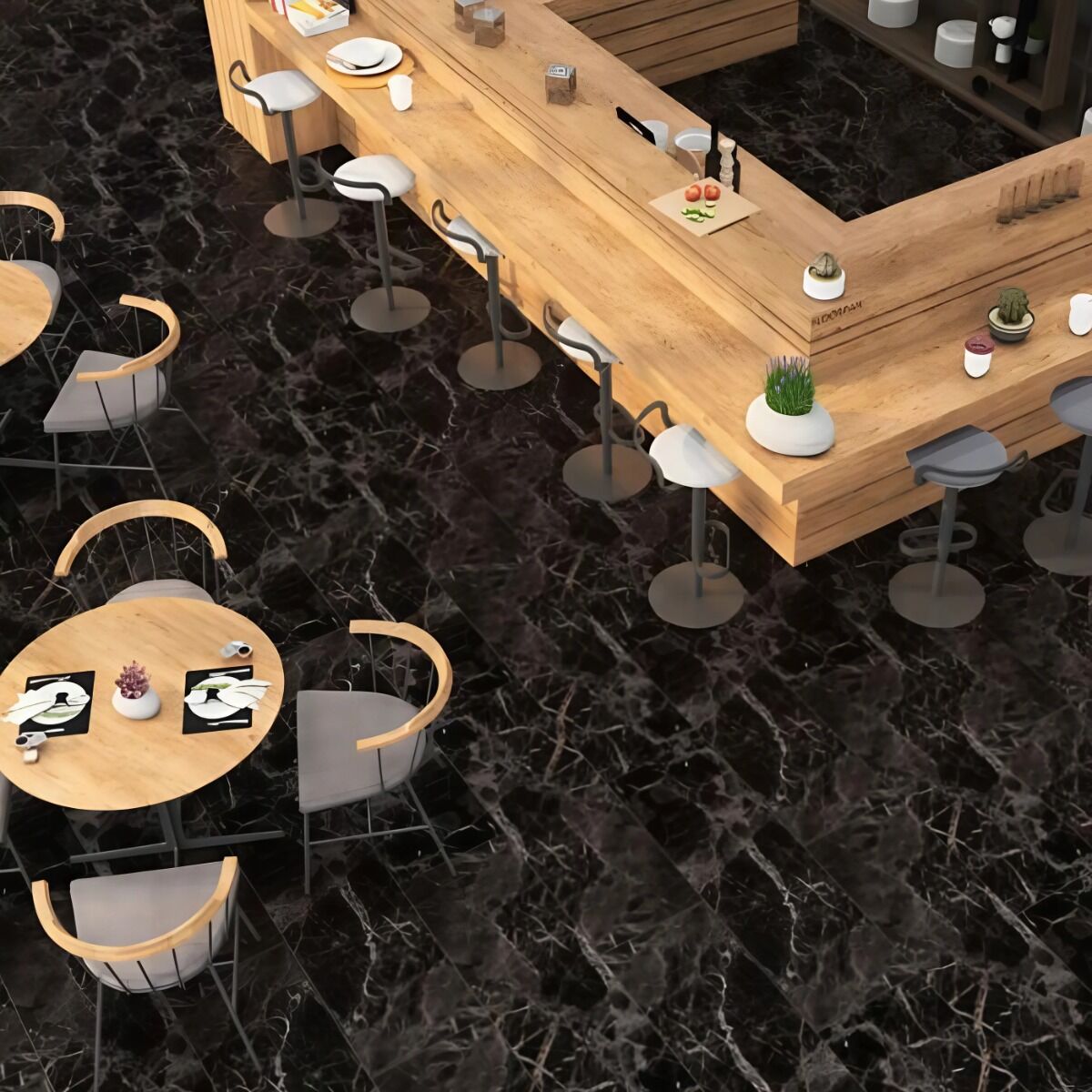 Parchetul laminat Tunisian Marble a fost realizat special pentru a aduce eleganta si rafinamentul in casa ta. Negrul este considerat, de obicei, a fi elegant si surprinzator prin aspectul sau simplu, care atrage toate privirile. Un parchet laminat in aceasta culoare cu siguranta te va surprinde inca de la intrarea in incapere. Tunisian Marble este un parchet laminat deosebit, cu aspect de marmura, nuantat de liniile fine albe.